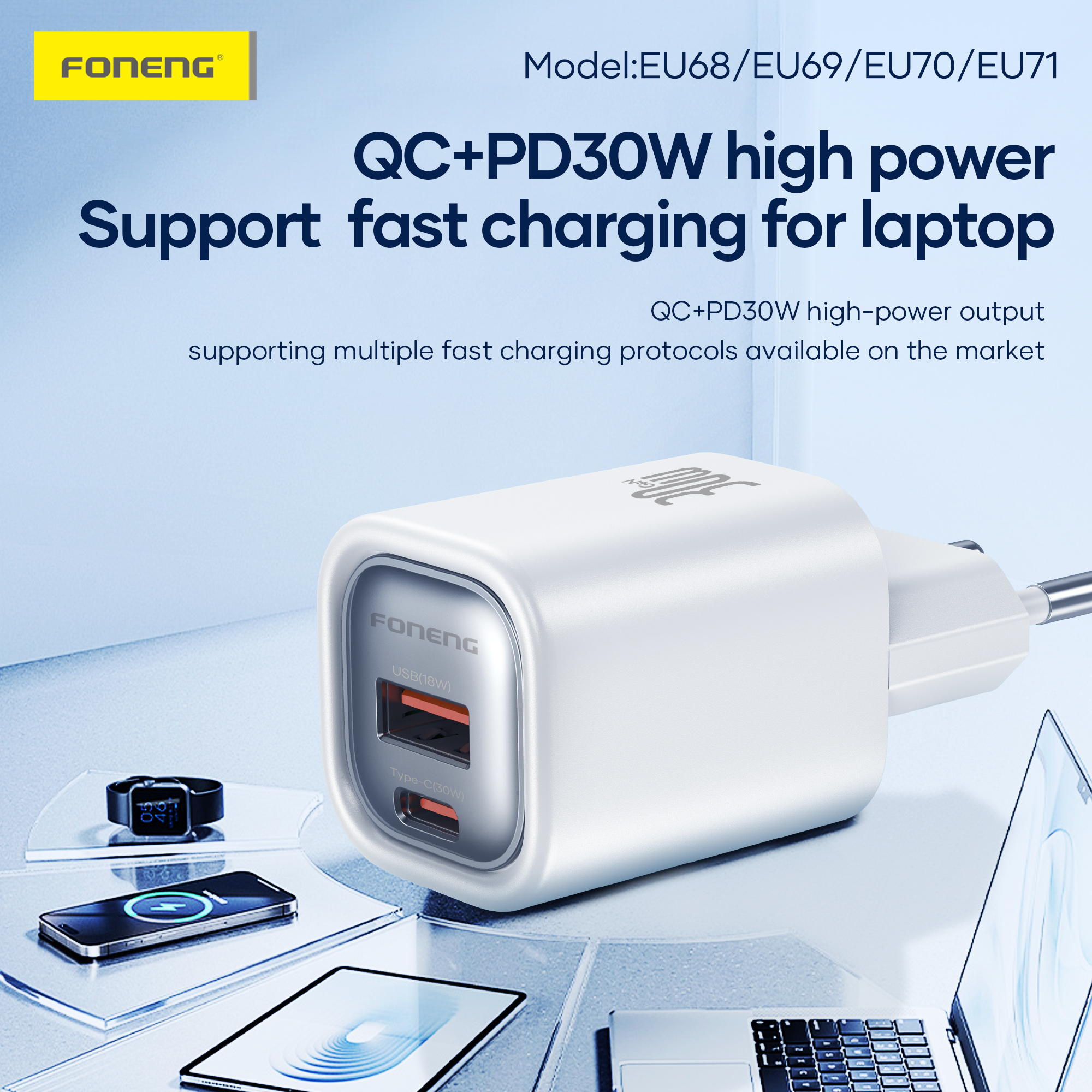 EU71 A+C 2-Port GaN Charger (PD30W)