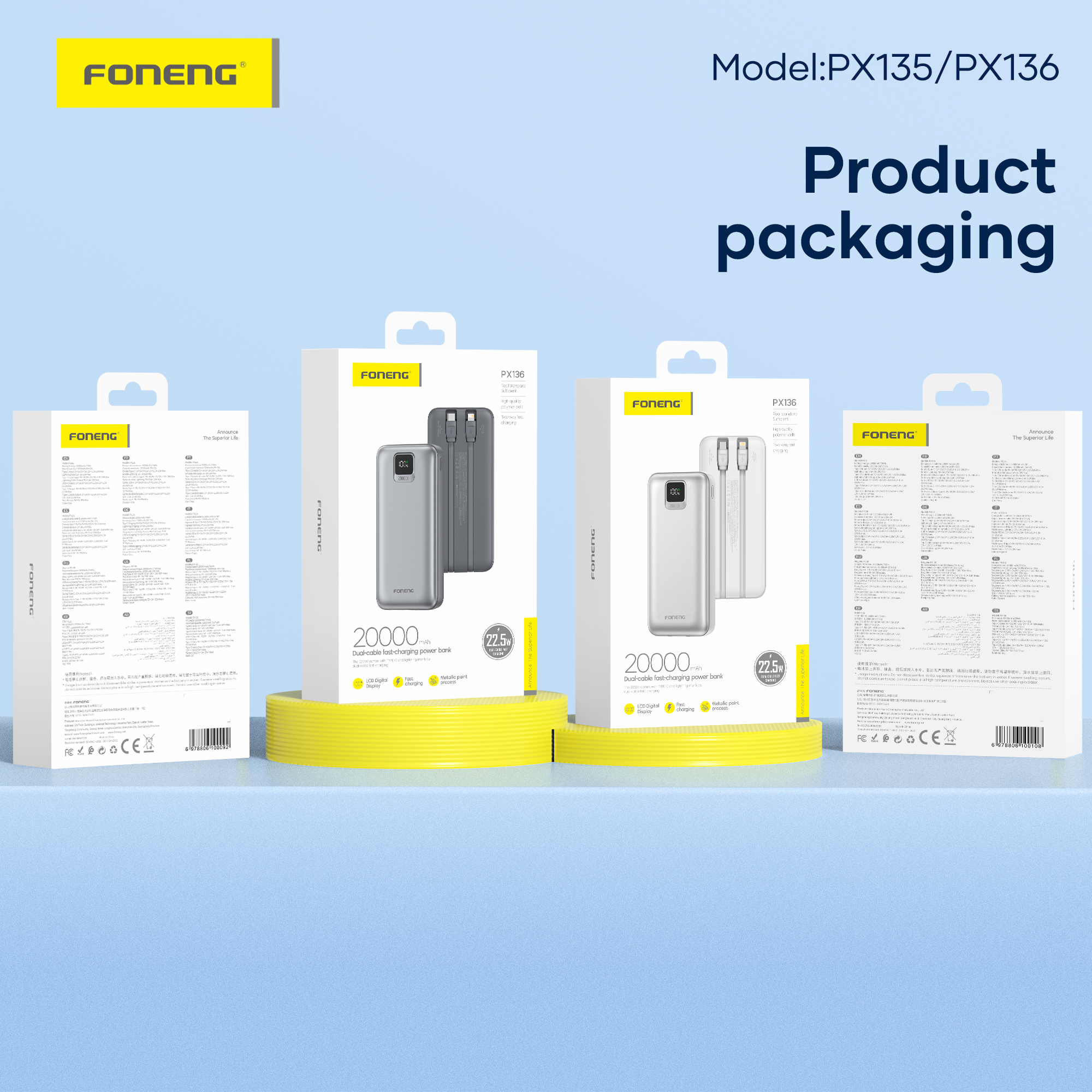 PX136 20000mAh Power Bank with 2 Built-in Cables (22.5W)