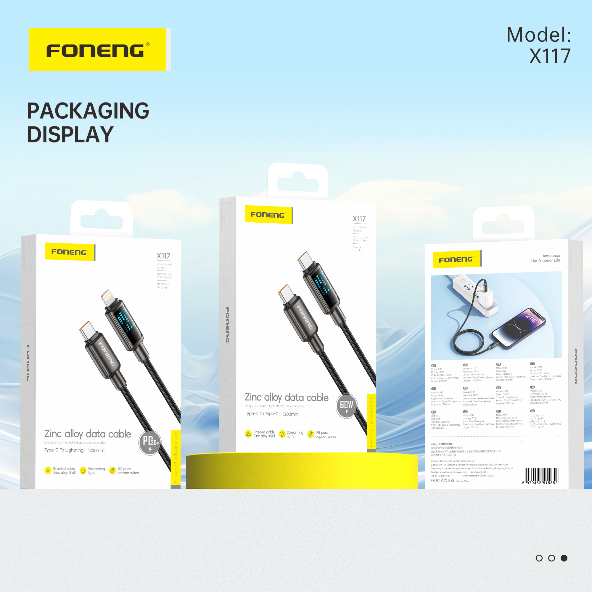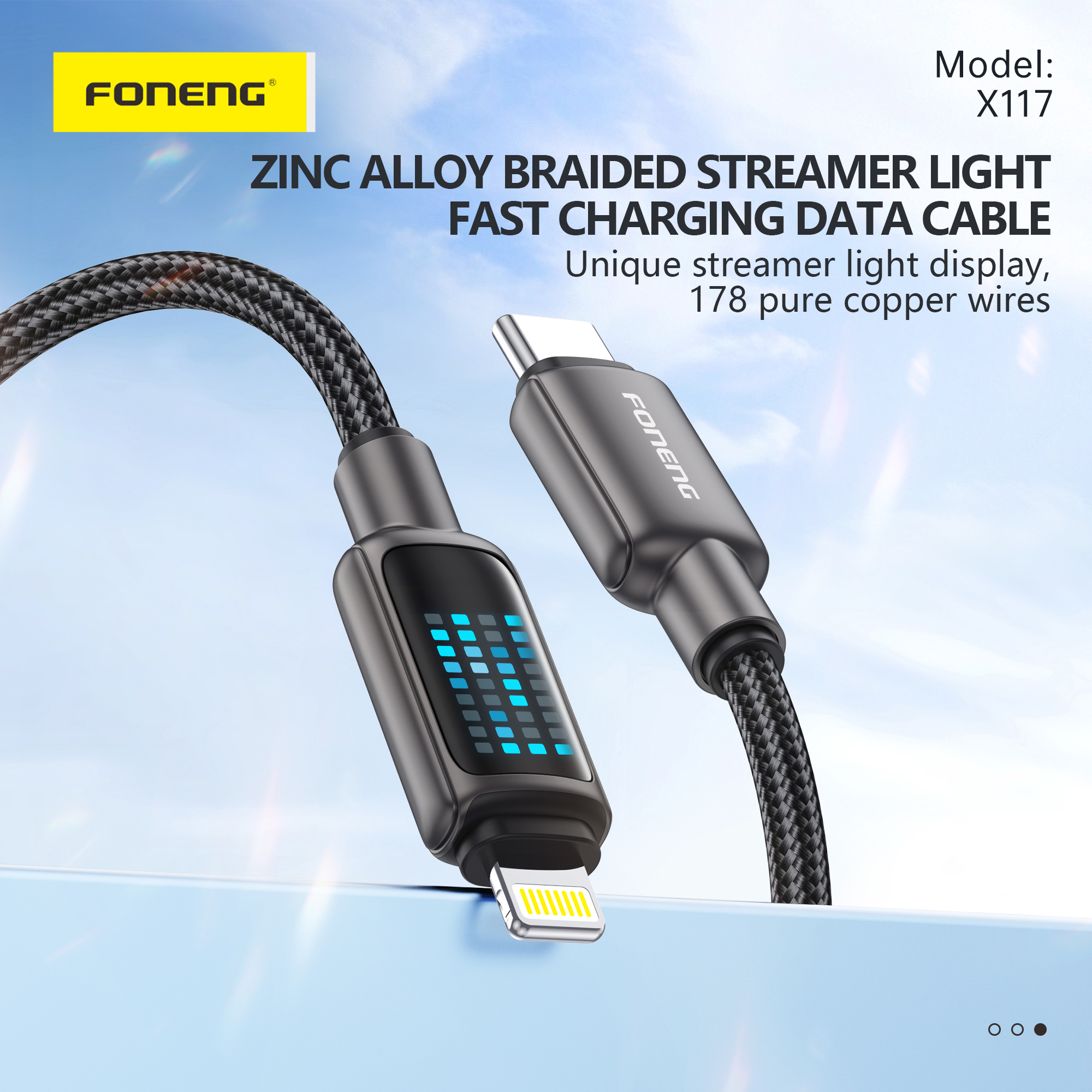 X117 1.2M Flowing Light Zinc Alloy Head Braided Cable (60W / PD30W)