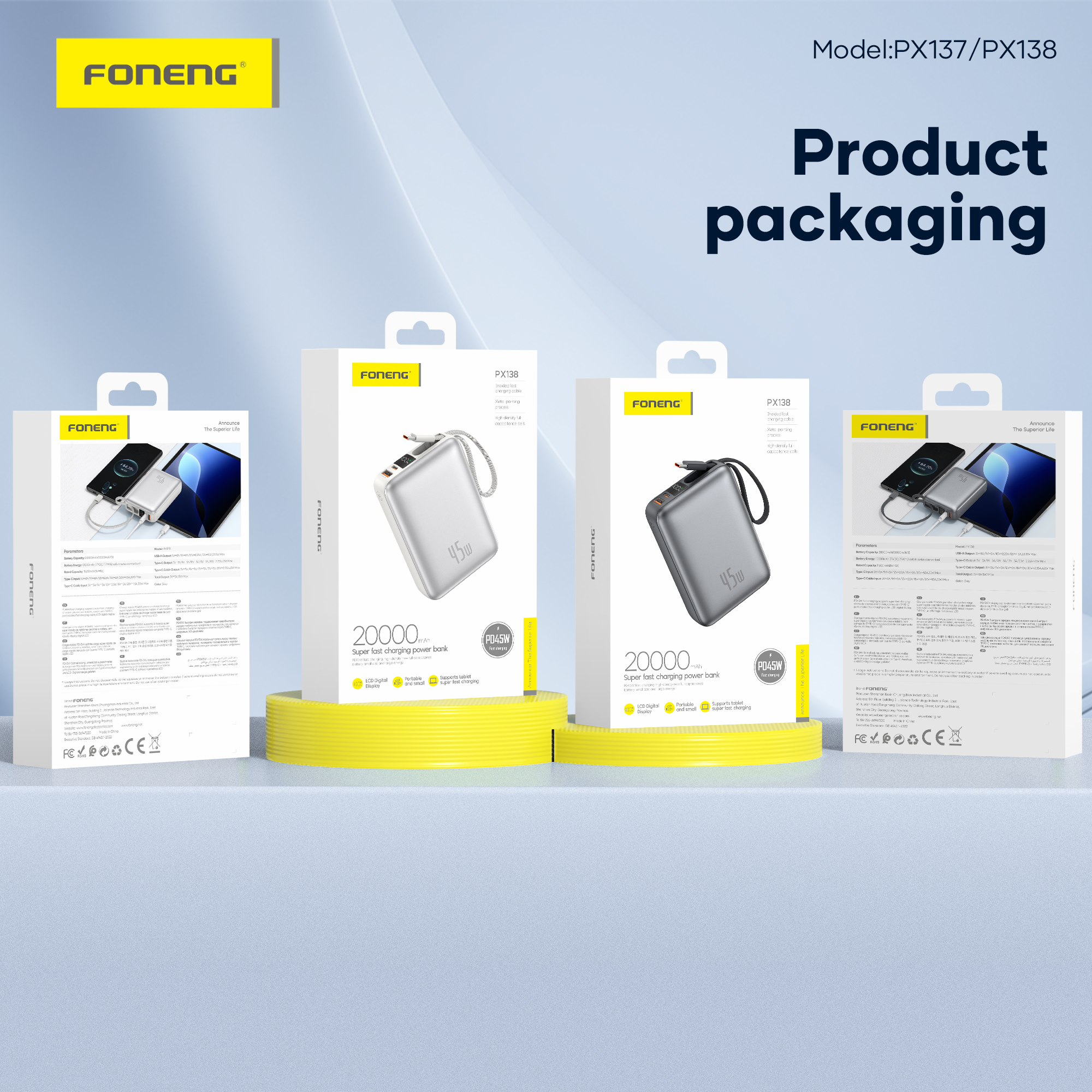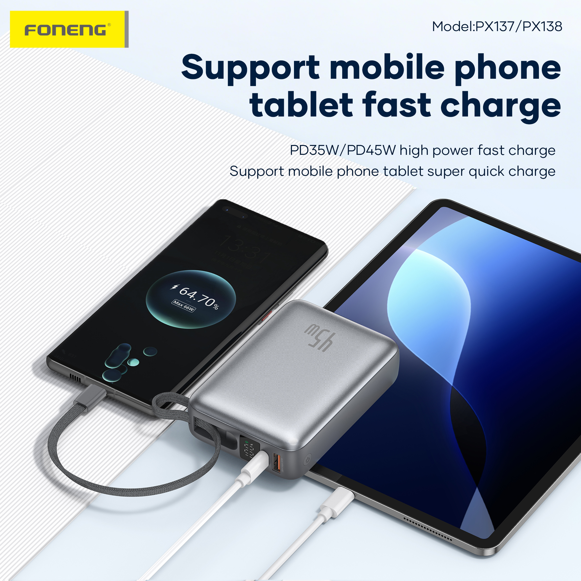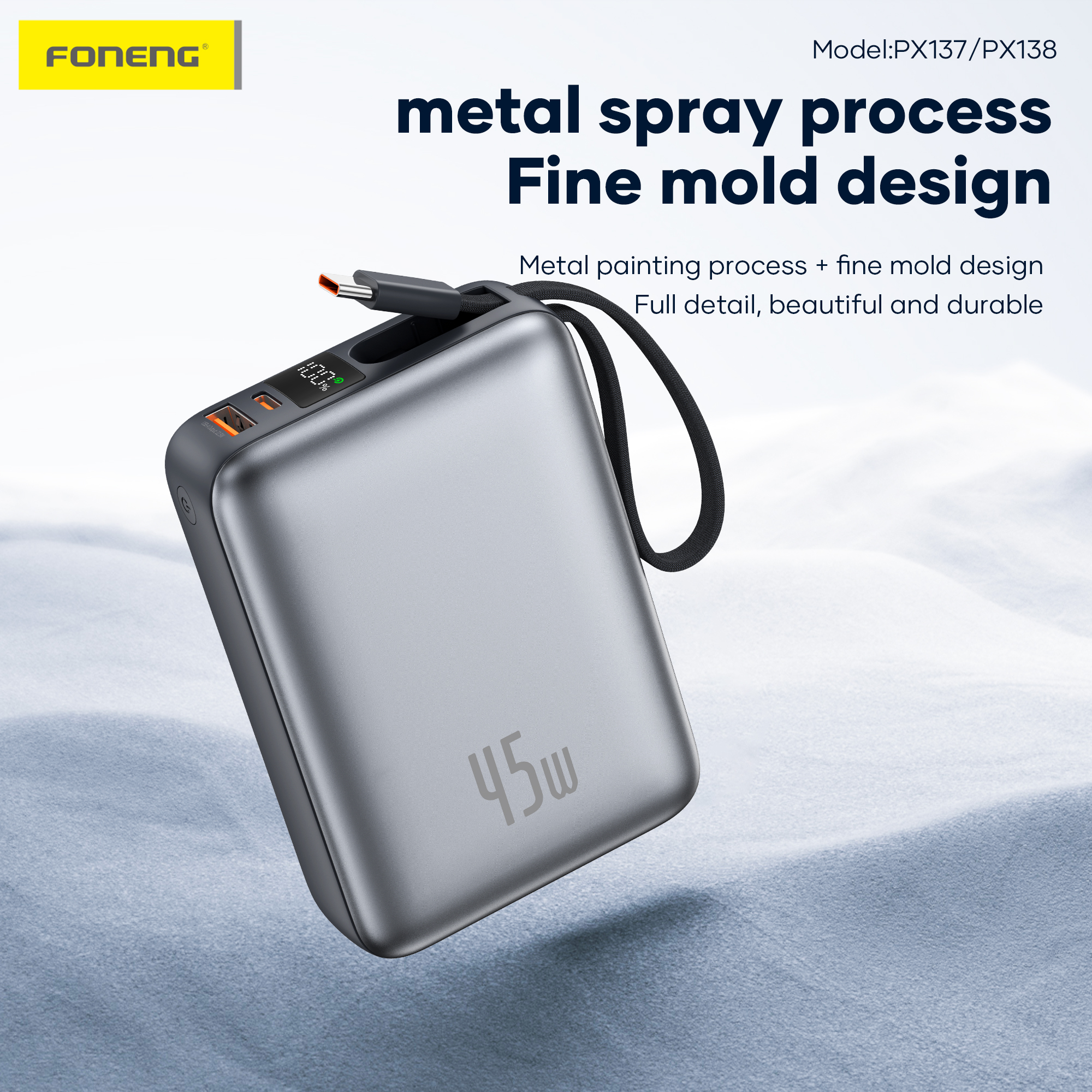Banc Cumhachta PX138 20000mAh le Cábla Tógtha Isteach (45W)
